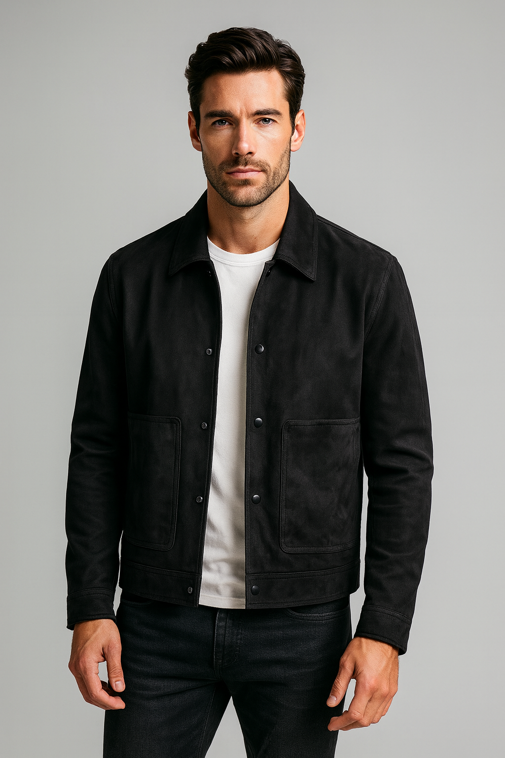 Expertly crafted from soft, premium suede, this jacket embodies understated sophistication. Its minimalist design and sleek finish offer effortless style, while the lightweight construction ensures comfort throughout the day. Ideal for both relaxed weekends and more refined occasions, it’s a versatile wardrobe staple.